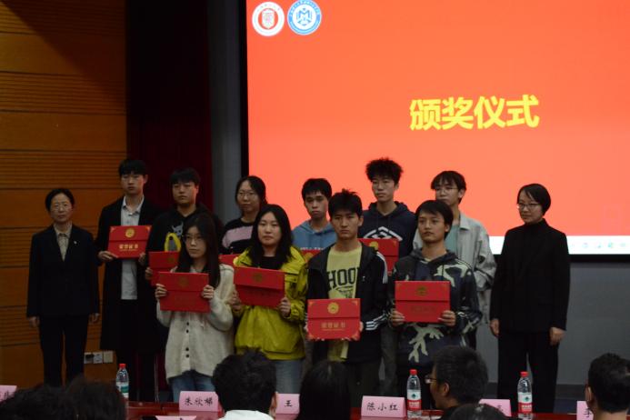 斯麟奖学金颁奖环节,缪煜清宣读2024-2025学年斯麟奖学金获奖名单,龚屹、何宇川、黄杰、刘孜卓、唐生智、覃文矗、肖煌、张伊琳、张元鑫、张耘豪10名同学获此殊荣。朱欣娣、王杨共同为获奖学生颁奖。