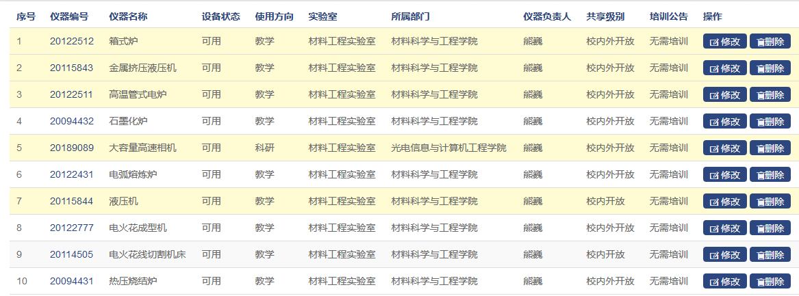 各位老师:材料工程实验室的仪器的预约,现整体迁移至学校的大型仪器预约平台,网站地址:http://sysjc.usst.edu.cn:8082/lab/webindex/weblogout.do登陆请选校内登陆,用户名和密码为学校个人主页的用户名和密码仪器列表如下: