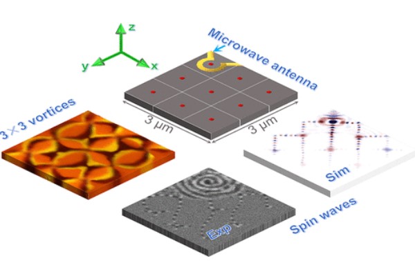 磁性是材料和器件的基础性能之一,磁涡旋的产生又是磁性物质的重要特征,对于磁涡旋的调控与观测研究有助于实现自旋电子学相关磁性器件的超微型化、多功能化、低能耗化和高集成化。针对长期以来只能构筑单个或双个磁涡旋,而不能获得多个磁涡旋的瓶颈问题,李翔副教授与合作者创新性地提出以非垂直手性纳米结构和高磁通软磁纳米线为载体,基于多场耦合环境和静磁耦合作用机制,成功构筑了具有低能耗和高传输效率的一维磁涡旋链和二维磁涡旋网络。评审专家认为,该研究成果将在磁信息存储、磁功能器件、自旋波、自旋电子学等多个领域中产生积极广泛的影响。